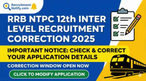 RRB NTPC 12th Level Application Correction 2025: Link, Date & Process RRB NTPC 12th Inter Level Online Form …