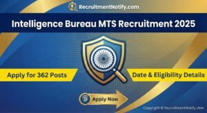 Intelligence Bureau MTS Recruitment 2025: The Ministry of Home Affairs (MHA) has officially released the detailed notification for …